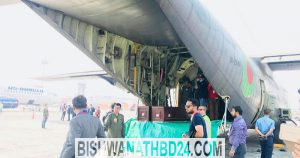 অনলাইন ডেস্ক :: নেপালে ইউএস-বাংলার উড়োজাহাজ দুর্ঘটনায় নিহতদের মধ্যে ২৩ বাংলাদেশির মরদেহ কফিনবন্দি হয়ে দেশে ফিরেছে। সোমবার বিকেল ৪টার দিকে কফিনবন্দি লাশগুলো নিয়ে ঢাকার শাহজালাল আন্তর্জাতিক বিমানবন্দরে অবতরণ করে কাঠমান্ডু থেকে ছেড়ে আসা বিমানবাহিনীর উড়োজাহাজটি। সেখানে আওয়ামী লীগের সাধারণ সম্পাদক এবং সড়ক পরিবহন ও সেতুমন্ত্রী ওবায়দুল কাদের নিহতদের মরদেহ আনুষ্ঠানিকভাবে গ্রহণ করবেন। এর আগে নেপালের ত্রিভুবন বিমানবন্দরে ইউএস-বাংলার উড়োজাহাজ দুর্ঘটনায় ..... বিস্তারিত
